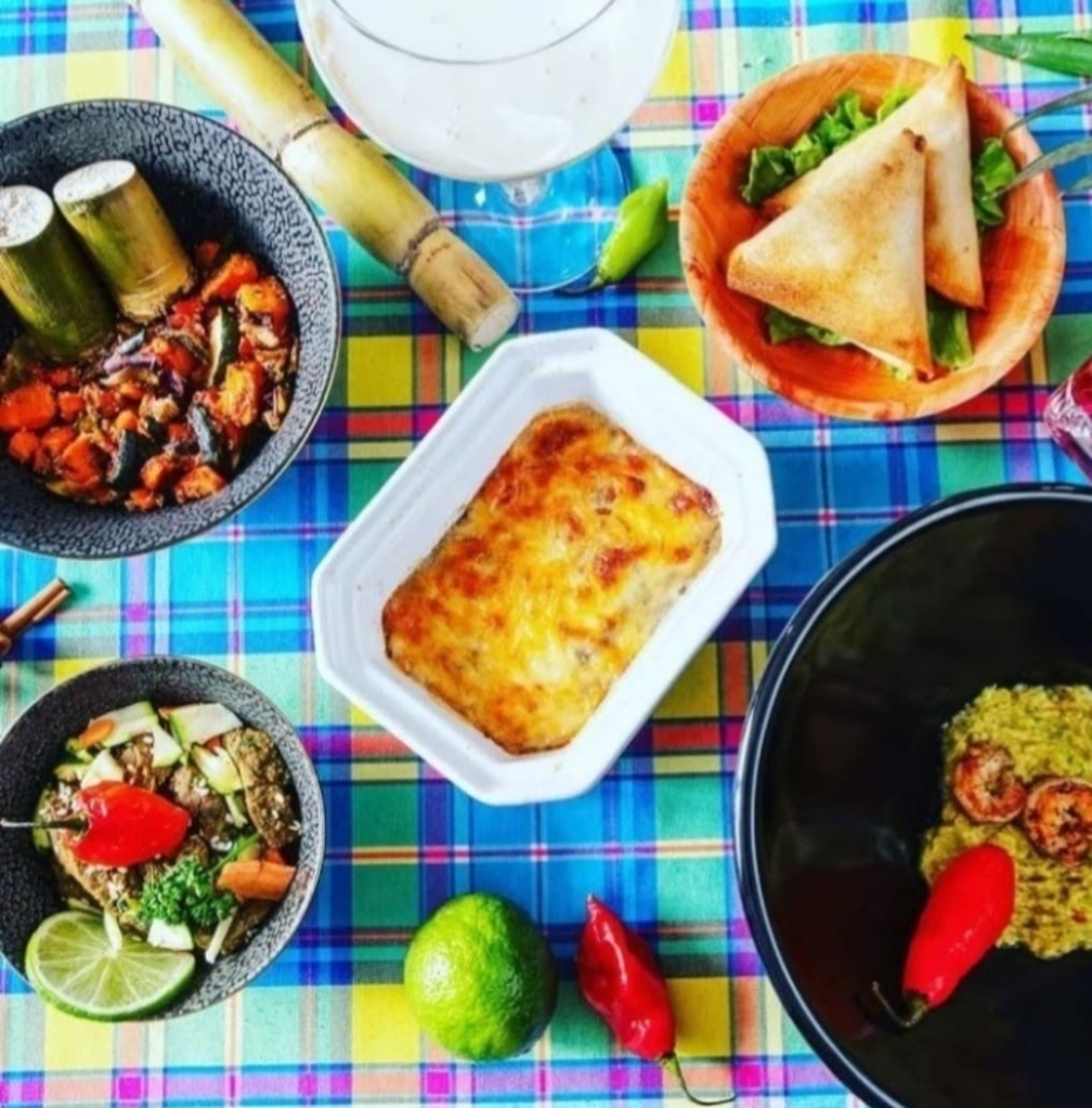 Saveurs : légumes rôtis au sirop de canne • bœuf épicé • porc • thon créole • crevettes